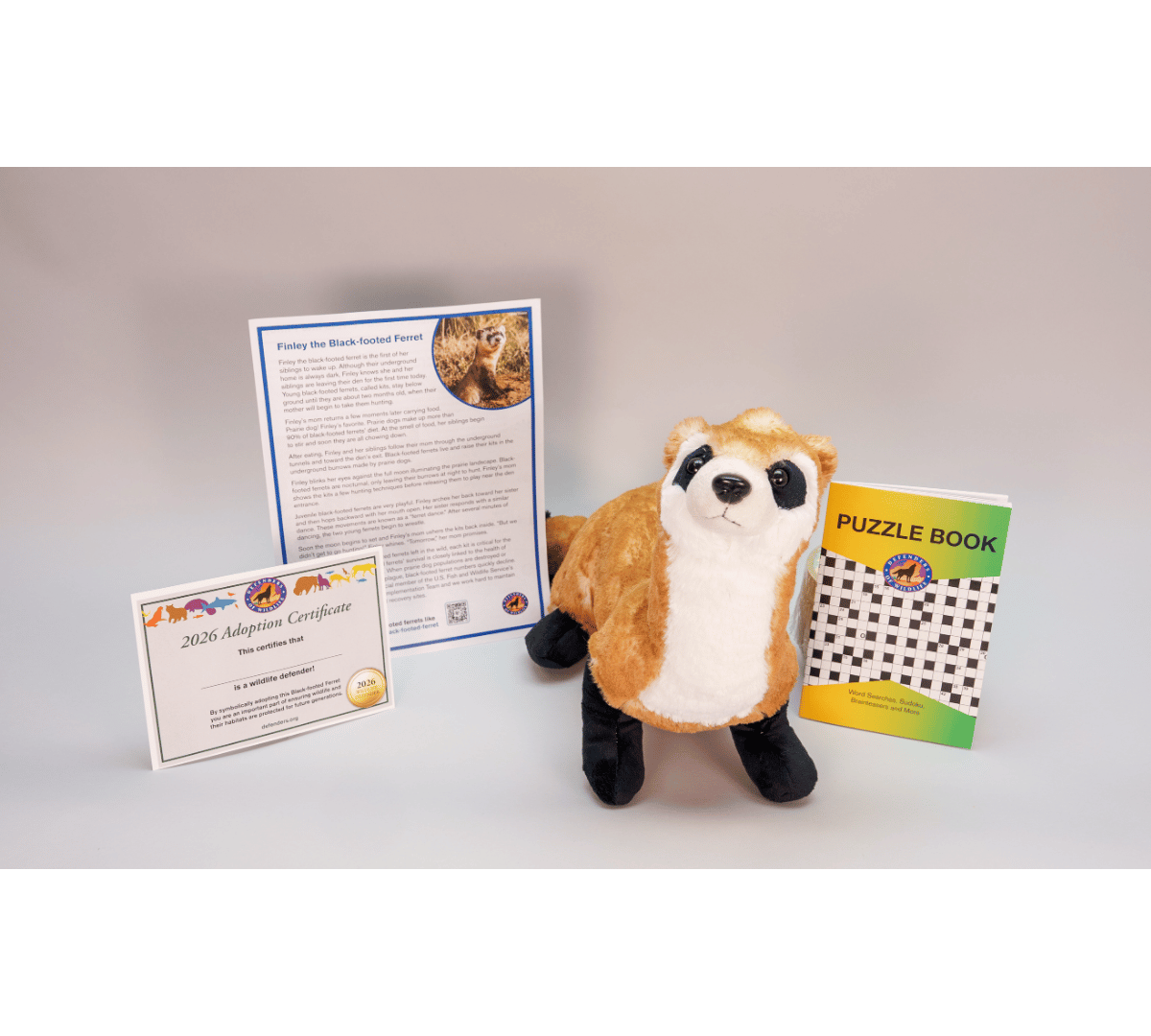 Finley is a juvenile black-footed ferret, also called a “kit.” With only about 400 black-footed ferrets left in the wild, each kit is critical for the animals’ recovery. Black-footed ferrets’ survival is closely linked to the health of their primary prey, prairie dogs. When prairie dog colonies are hurt, black-footed ferret numbers quickly decline. By adopting Finley, you are helping Defenders of Wildlife recover black-footed ferrets through partnerships to maintain habitat, map recovering prairie dog colonies and vaccinating ferrets to prevent disease.
