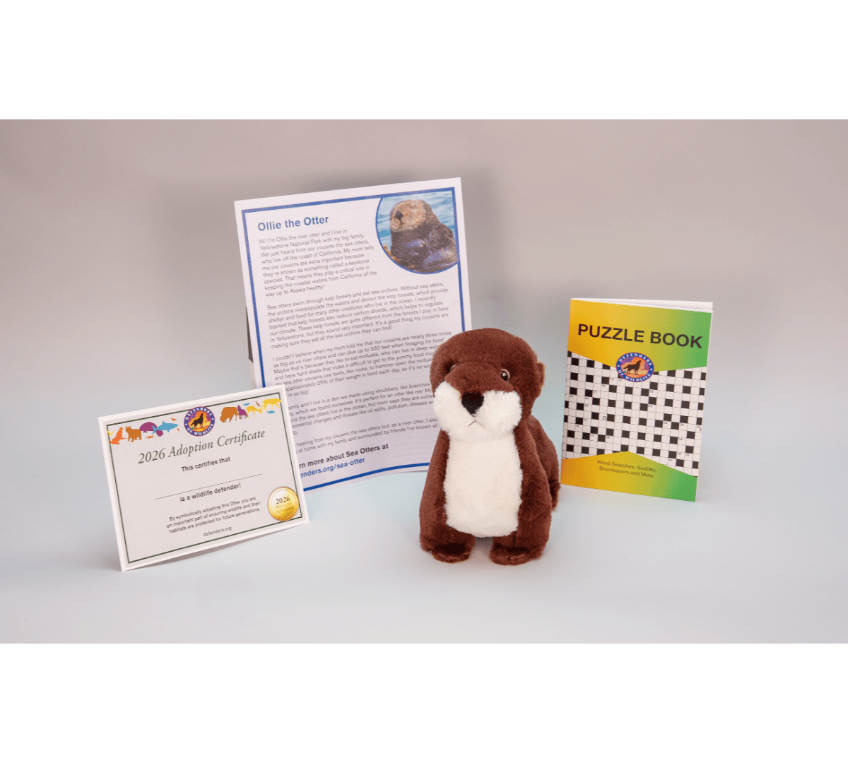 Ollie is a river otter from Yellowstone National Park. River otters like Ollie are closely related to sea otters, who live off the Pacific coast. Sea otters are a keystone species, meaning they are critical in keeping ocean habitats healthy. By adopting Ollie, you’re helping Defenders of Wildlife lead efforts for sea otter recovery and the protection of all keystone wildlife who help keep nature in balance.